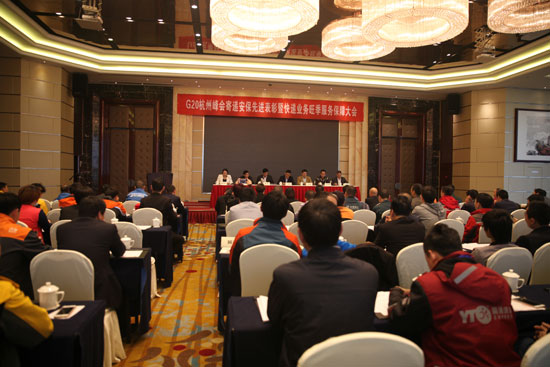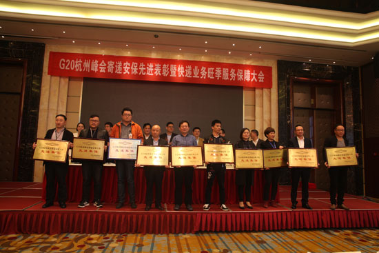 2016年10月31日下午14時,“G20杭州峰會寄遞安保先進表彰暨2016快遞旺季服務保障工作會議”在杭州天元大廈召開,杭州市綜治、公安、國安、郵政管理局等相關部門出席會議并講話,圓通速遞等快遞企業(yè)相關負責人及代表參加了會議。會議布置了2016年杭州市快遞旺季服務保障工作并隆重表彰了G20杭州峰會寄遞安保先進集體和先進個人,圓通速遞浙江省區(qū)、下屬3家加盟公司及17名員工分別受到表彰。